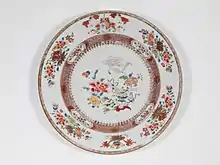Mottahedeh found work as an interior designer in Manhattan.[11] In 1929[12] she joined Mottahedeh & Company, a porcelain company that her husband had founded in 1924.[13] They initially focused on importing antique porcelain, much of it valuable artifacts of the Ming era, as her husband's family shipped crates of china from Tehran.[7][14][15] Mottahedeh did interior design work for Herbert Hoover when he was president.[16] Throughout the 1930s, the couple sold thousands of antique plates to Macy's.[17][lower-alpha 1] They switched to making porcelain reproductions of the Ming plates[17] around the end of World War II, as the amount of porcelain available to import declined.[7][14][15] The move made Mottahedeh & Co. one of the earliest companies to make such reproductions.[18] As a pioneer in the field at a time when many museums frowned upon reproductions, Mottahedeh advocated heavily in favor of them, saying "If we didn't reprint books, look at how much we'd lose in history ... The same is true of porcelain. If we didn't remake them, we'd lose all those designs."[19] She also described the reproductions as "democratizing" porcelain.[20] Mildred designed some of the original pieces the company made based upon her research and inspired by antiques.[7] An obituary published in Classic American Homes described her as "the driving creative force" behind the company.[13] The company grew, producing around 2,000[8] different items for numerous shops, supplying around 3,000.[21]