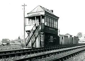 - ↑ Butt, R. V. J. (October 1995). The Directory of Railway Stations: details every public and private passenger station, halt, platform and stopping place, past and present (1st ed.). Sparkford: Patrick Stephens Ltd. p. 204. ISBN 978-1-85260-508-7. OCLC 60251199. OL 11956311M.