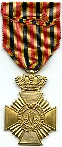 The Military Decoration (Dutch: Militair Ereteken, French: Décoration Militaire) is a military award of the Kingdom of Belgium. It was established on December 23, 1873 and is awarded to non-commissioned officers and other ranks of the Belgian Armed Forces for long service. Initially, the medal was created in 2 versions. The version for exceptional service, gallantry or devotion to duty was created by the same royal decree, has the same jewel, but a different ribbon. Currently, both medals still exist, but are considered to be separate awards, not variations of the same award.