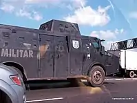 In 2001, the BOPE adopted armored vehicles baptized as "caveirões" to protect PMs in raids in slums. Thus, the battalion was heavily criticized by human rights groups for having printed the insignia of skull pierced by a dagger.
