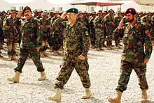 In all service branches, the beret is "bashed" to the right and a badge or insignia is worn above the left eye. In the army, all units can wear them with certain units wearing unique ones.[13] In the navy, the beret is an optional item[14] and in the air force, it is only worn by certain units.[15]