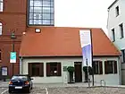 Standing opposite the Mill Bridge, it is the largest preserved granary in Bydgoszcz. Formerly so-called "Mill Camphausen", it has been built by the architect Wolff in 1861.[15] "Mill Camphausen" complex had eight grinding lines, with an annex, a boiler room, a mill windmill, and a granary. The mill was gradually refurbished and expanded: in 1930, the building consisted of a mill, an outbuilding, a boiler house, a turbine, a lock and an airlock, a flour granary, a miller's house, an administration house with a porch and an outhouse and a shed.[14] Behind the building is the beginning of the "Międzywodzie kanal" which parts Mill Island. Originally, adjoined to the Red Granary was set water wheels driving the mill, it was disbanded in 1917 when transitioning to hydroelectric power station.[15] Today the adjacent building, the Miller's House, is fully rehabilitated. In 1975, the Red Granary has been attached to the Regional Museum and accommodated sporadically several art shows between 1998 and 2006.[19] In 2006-2008, it was extensively renovated under the program Restoration of cultural heritage on Mill Island.[6] Since 2009, the Red Granary houses Bydgoszcz Modern Art Gallery.