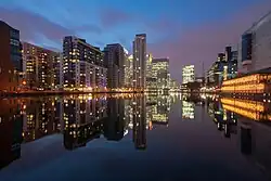 The Docklands Sailing and Watersports Centre is located at the far west end of the dock where the dock previously connected to the River Thames.[10] It was set up in 1989 by the London Docklands Development Corporation and the Sports Council at a cost of £1.2 million.[11]