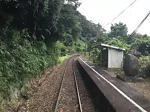 The station consists of one ground-level side platform and one track on the right side facing Bingo-Ochiai. The platform is located on a slope, and is at a high position relative to the surrounding roads. There is no station building, and the station is unattended.
