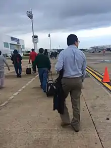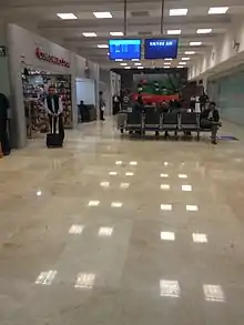 The passenger terminal caters to both domestic arrivals and departures in a single-story structure. It includes check-in areas, a security checkpoint, a baggage claim area, and an arrivals hall with car rental services, taxi stands, and several retail stores. The departures concourse includes a VIP lounge and two gates with direct access to the apron, allowing passengers to board their planes by walking to the aircraft.[4] Adjacent facilities include parking areas, civil aviation hangars, administration offices, courier and logistic facilities, and facilities for general aviation.