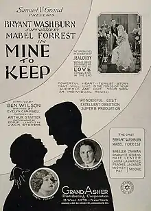 Mine to Keep is a 1923 American silent drama film directed by Ben F. Wilson and starring Bryant Washburn, Charlotte Stevens and Wheeler Oakman.[1]