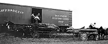 Savage and his backers chose 54th and Nicollet, at the time the Richfield-Minneapolis border, as the starting point for the new railroad. Minneapolis' Nicollet streetcar line ended at that spot, so passengers could easily transfer to the adjacent Dan Patch system. Its owners named their new firm the Minneapolis, St. Paul, Rochester and Dubuque Electric Traction Company, but no one used the full name. Instead, they preferred the nickname "Dan Patch Line." Construction began in 1908, eventually reaching Northfield in late 1910.[1] Grading began on an extension to Faribault in 1911, but the company never secured an entrance into Faribault and abandoned the project.