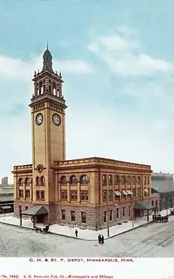 - Minneapolis Great Northern Depot – Former Minneapolis destination for Chicago and North Western, Great Northern, and Northern Pacific passenger trains