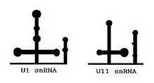 - ↑ Kolossova I, Padgett RA (1997). "U11 snRNA interacts in vivo with the 5' splice site of U12-dependent (AU-AC) pre-mRNA introns". RNA. 3 (3): 227–33. PMC 1369475. PMID 9056760.