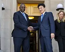Kihara with U.S. Secretary of Defense Lloyd Austin in Pentagon, Washington, D.C., 4 October 2023