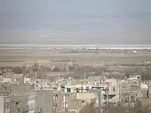Miqan Wetland with an area of 25,000 hectares.[7] The area of Miqan wetland has reached 61.18 square kilometers in May 2019 and more than 19 square kilometers in August 2019.[8] is located 15 km northeast of Arak city and in the south of Davoodabad city. It is next to Rahzan, Deh Namak, and Miqan villages. The catchment area of the wetland varies between 10,000 -12,000 hectares depending on the amount of the absorbed water. Its average altitude is 1700 meters above sea level and its annual rainfall is 258 mm. The water level of the wetland (in different seasons of the year) reaches to 140 cm.[3]