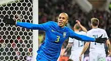 Miranda scored his first international goal on 6 September 2016, in the second minute of a 2–1 win over Colombia in a World Cup qualifying match played in Manaus.[40] In May 2018 manager Tite named him in the final 23-man squad for the 2018 FIFA World Cup in Russia,[41] where he played as a starter in the five matches played by Brazil, which was eliminated in the quarterfinals.
