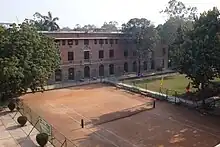 Miranda House was founded in 1948 by the university vice-chancellor, Sir Maurice Gwyer.[8] In a magazine published by him in 1952, he gave three reasons for why the college was called Miranda. His favorite actress was Carmen Miranda, his daughter's name was Miranda, and a character named Miranda in William Shakespeare’s play The Tempest was, according to him, a perfect example of what a lady should be. Its foundation stone was laid by Lady Edwina Mountbatten on 7 March of the same year. Miranda House is built of red bricks on the university campus. Its original design was planned by the architect Walter Sykes George and is architecturally similar to other educational institutions in India founded in the colonial era. As the college grew, several buildings were added.