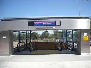 Mirasierra [ˌmi.ɾaˈsje.ra] is a station on Line 9 of the Madrid Metro, serving the Mirasierra barrio. It is located in fare Zone A.[1]