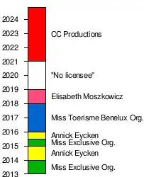 2018 | Elisabeth Moszkowicz | 1st runner-up Miss Brussel 2019 | Unplaced | — | [19][20] |