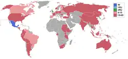 Contestants from Italy and Suriname withdrew before the pageant started. While, contestants from Guam, Guatemala, Kenya, Sudan, Ukraine withdrew 10 days after the pageant started, only 66 contestants continued at the competition. A day before the grand final, Costa Rica and Nigeria confirmed not arrived at Chengdu, China due both of them had visa problems, marking the number of contestants decreased to 64. Sudan finally arrived at Chengdu to attend the preliminary judging, rehearsals and the grand final with others contestants. The number of contestants finally increased to 65.[4]