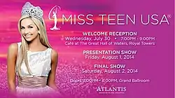 ![]() Promotional banner for Miss Teen USA 2014 featuring Cassidy Wolf | |