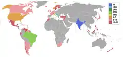 Rhodesia - Was barred from participating from 1966 to 1979 due to the country's political situation. Became Zimbabwe in 1980 and debuted as Zimbabwe at Miss World.