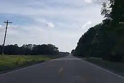 Legally, Mississippi 25 is defined in Mississippi Code Annotated § 65-3-3, as follows: "Begins at or near Jackson, Hinds County, thence in a northeasterly direction to or near Carthage, Louisville and Starkville, thence along U.S. 82 to its intersection with U.S. 45A, thence along U.S. 45A to Muldon, thence to or near Aberdeen, Amory, Smithville, to U.S. 78, thence continuing to Belmont, Dennis, Tishomingo, Iuka and to the Mississippi-Tennessee state line north of Cross Roads, Tishomingo County."[3]