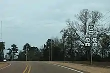 Walthall | Tylertown | 60.0 | 96.6 | ![]() ![]() ![]() ![]() | West end of MS 198 overlap |
