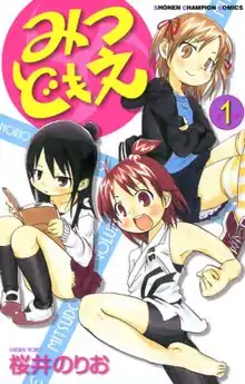 ![]() Cover of Mitsudomoe first volume as published by Akita Shoten featuring Mitsuba, Futaba, and Hitoha Marui | |