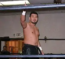 Miyawaki has also made several wrestling trips to the United States. In February 2006, he took part in Chikara's 2006 Tag World Grand Prix, where he and Yoshiaki Yago made it to the second round before losing to compatriots Kudo and Mikami.[7] Miyawaki and Yago returned to the promotion the following May to unsuccessfully challenge The Kings of Wrestling (Chris Hero and Claudio Castagnoli) for the Chikara Campeonatos de Parejas.[8] In February 2007, Miyawaki took part in Chikara's first-ever King of Trios tournament, where he, Yago and Kudo made it all the way to the finals, before losing to Jigsaw, Mike Quackenbush and Shane Storm.[9] A year later, Miyawaki, Kudo and Susumu made it to the quarterfinals of the 2008 King of Trios tournament, before losing to Eddie Kingston, Joker and Ruckus.[10] The following July, Miyawaki made his debut for Southern California-based Pro Wrestling Guerrilla (PWG), teaming with Kazma in a three-way tag team match, where they were defeated by The Young Bucks (Matt and Nick Jackson).[11]