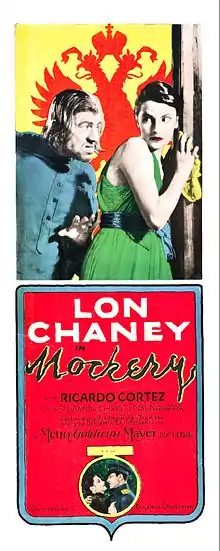Mockery (1927) is an American silent film about the Russian Revolution starring Lon Chaney. The movie was the second film made in Hollywood by Danish director Benjamin Christensen and stars Chaney as a Siberian peasant who aids a countess (played by Barbara Bedford) who is threatened by the encroaching insurgency. The screenplay was written by Bradley King, based on a story by Benjamin Christensen, which in turn was adapted from a short story by Stig Esbern. The sets were designed by Cedric Gibbons and Alexander Toluboff.[1]