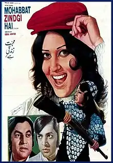 Mohabbat Zindagi Hai is a 1975 Pakistani Urdu colour film directed by Iqbal Akhtar and produced by Begum Riaz. It is a romance film and a musical film. It cast Mohammad Ali, Zeba, Waheed Murad, Mumtaz, Nayyar Sultana, Qavi Khan, Saqi and Lehri. Waheed Murad played a secondary role and Zeba played a lead role against Mohammad Ali.[1]