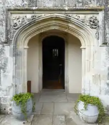 The old manor house burnt down in 1868 and was completely rebuilt as a farmhouse, categorised as a grade II listed building since 1955.[5] The ruins of a mid-16th century gatehouse lie to the south of the house; these and the adjoining garden walls, probably built in the mid-19th century at the same time as the farmhouse, are grade II* listed.[6][7] The house now has six reception rooms and six bedrooms. Around the courtyard are a cottage, stables and farm buildings. The River Otter forms part of the eastern boundary of the estate. In January 2014 the house with 228 acres was offered for sale for £3.5 million.[8]