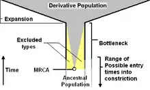 A population bottleneck, as illustrated was detected by intrahuman mtDNA phylogenetic studies; the length of the bottleneck itself is indeterminate per mtDNA.