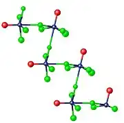 Molybdenum oxytetrafluoride is the inorganic compound with the formula MoOF4. It is a white, diamagnetic solid. According to X-ray crystallography, it is a coordination polymer consisting of a linear chain of alternating Mo and F atoms. Each Mo center is octahedral, the coordination sphere being defined by oxide, three terminal fluorides, and two bridging fluorides.[1] In contrast to this motif, tungsten oxytetrafluoride crystallizes as a tetramer, again with bridging fluoride ligands.[2]