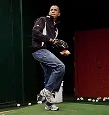 A corresponding term, dad jeans, has been coined in popular media to refer to high-waisted jeans often worn by middle-aged American men. The term gained popularity in 2009 when President Barack Obama wore dad jeans during the 2009 Major League Baseball All-Star Game.[4][5][6][7] In March 2015, Obama appeared on Jimmy Kimmel Live! for the "Mean Tweets" segment, in which he read a tweet mocking him over the jeans. Jimmy Kimmel then appeared on stage wearing high-waisted jeans, and jokingly attempted to defend them.[8]