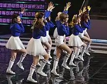 In 2019 and 2020 Momoland members publicly supported Black Lives Matter.[56][57] On April 21, the group donated 10,000 face mask cases (worth 100 million won) to Plan Korea to help prevent and overcome the COVID-19 pandemic.[58] On May 8, they donated 1,180 kilograms of rice to the underprivileged through the Korean Red Cross.[59] On June 26, they gave 1,500 sanitary pads (worth 5 million won) to multicultural families in need. The women's hygiene products were from the brand On A Precious Day, who previously announced Momoland as their exclusive endorsers.[60][61] The next month, through Good Neighbors, they donated 1,500 sanitary pads from On A Precious Day to low-income families.[62] In July, Momoland held at online concert called "Joy Angel Concert" as a social contribution project and donated the proceeds to the disadvantaged people struggling from COVID-19.[63] In October, they participated in a charity photo shoot to introduce the reality of women's rights and the protection of women's rights worldwide. In November, Momoland participated in SBS' "Life Sharing Concert" which meant to encourage Koreans to participate in blood donation.[64] In the same month, they also participated in the KBS1 Open Concert "Neighborhood Love Sharing Concert", a social contribution project for the underprivileged and socially disadvantaged.[65]