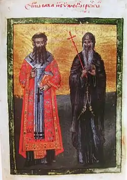 It is not known exactly when the monastery was founded. Today's see of the Eparchy of Mileševa was established before the 1465 Ottoman conquest of the city. Since the Ottoman law forbade the building of new churches, but permitted the rebuilding of those which had existed at the time of Mehmed the Conqueror, it is certain that a church had existed on the site of the present monastic church, before the Ottoman conquest and probably made of wood. The first reference to Holy Trinity Monastery in Pljevlja dates from 1573, when Sava, a monk from the monastery, copied a manuscript. At that time the monastery was managed by abbot Visarion, who took great pains to improve its economic position. Moreover, an inscription published by Sava Kosanović in 1871 shows that it was precisely this abbot who restored the monastery. This testimony is corroborated by the donor's portrait of Visarion on the south wall of the nave. On 1 December 1941, during the Battle of Pljevlja the Communist forces killed Serafim Džarić, an archimandrite of the Monastery of the Holy Trinity of Pljevlja, as a direct consequence of the order of Partisan headquarters to start with "fierce struggle against spies and fifth column" after the capture of the town.[1]