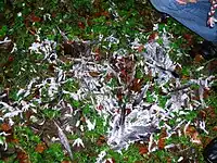 On 8 November 1576, midwife Bessie Dunlop, resident of Lynne, in Dalry, was accused of sorcery and witchcraft. She answered her accusers that she received information on prophecies or to the whereabouts of lost goods from a Thomas Reid, a former barony officer in Dalry who died at the Battle of Pinkie some 30 years before.[31] She said she first met him while walking between her own house and the yard of Monkcastle, and after a discussion he disappeared through a hole in a wall or dyke, apparently too small for a normal person to pass through.[32] Bessie also met with the warlock Laird of Auchenskeigh at a thorn tree near to Monkcastle.[33]