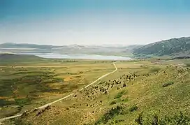 The Mono Basin is an endorheic drainage basin located east of Yosemite National Park in California and Nevada.[3][4] It is bordered to the west by the Sierra Nevada, to the east by the Cowtrack Mountains, to the north by the Bodie Hills, and to the south by the north ridge of the Long Valley Caldera.[1]