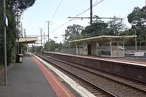 Mont Albert railway station was located on the Lilydale and Belgrave lines in Victoria, Australia, serving the eastern Melbourne suburb of Mont Albert. Located between Surrey Hills and Box Hill, it opened on 11 August 1890 and closed on 17 February 2023, due to project works associated with the Level Crossing Removal Project.[5]