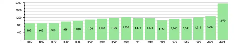 Montagny has a population (as of December 2020) of 2,712.[8] As of 2008, 7.1% of the population are resident foreign nationals.[9] Over the last 10 years (2000–2010) the population has changed at a rate of 14.7%. Migration accounted for 10.3%, while births and deaths accounted for 2.8%.[10]