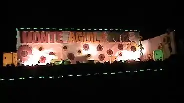 - El Verano Monteaguilino: El Verano Monteaguilino (spanish for Monteaguilean Summer or Monteaguilino Summer), also called Febrero Monteaguilino (spanish for Monteaguilean February or Monteaguilino February), by the date it is made, and formerly known as Semana Monteaguilina (spanish for Monteaguilean Week or Monteaguilino Week).[20] Although the foundation date of Monte Águila is unknown until today, the city's anniversary is traditionally celebrated in February. Depending on the year, it can last a month or a week. In it, a series of artistic, sports and recreational disciplines are performed, in addition to inviting artists of national and international recognition[21] and ends with a carnival night, where costumes, comparsas and handmade allegorical cars are exhibited.[22] At the beginning it was carried out by the same community, but since 2011 it is carried out by the Municipality of Cabrero.[23] The main events are usually held in three specific places, the Main Square, the Municipal Gym and the Sports Complex.[24]