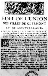 Montferrand (French: [mɔ̃fɛʁɑ̃] , ⓘOccitan: [mumfeˈra]) is a district of the modern town of Clermont-Ferrand in Auvergne. Its origin is in the former town of Montferrand, the rival of Clermont for many centuries until their union, decreed on 15 April 1630 by the edict of Troyes (first edict of union) and confirmed and effected in 1731 by Louis XV's second edict of union. Wishing to regain independence, Montferrand asked for it in 1789, 1848 and 1863.