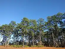 According to the U.S. Census Bureau, the county has a total area of 705.69 square miles (1,827.7 km2), of which 697.68 square miles (1,807.0 km2) is land and 8.00 square miles (20.7 km2) (1.13%) is water.[14] Moore County is bordered by Chatham, Lee, Harnett, Cumberland, Hoke, Scotland, Richmond, Montgomery County, and Randolph counties.[4] It lies mostly within the Piedmont region, though some of the county extends into the state's Coastal Plain.[15] Additionally, the county lies within the Sandhills region,[16] and about two-thirds of its land are host to sandy soils.[17] The county drains into the Cape Fear River Basin and Lumber River Basin.[18] Local waterways include Pine Lake, Deep and Little Rivers[19][20] and Aberdeen, Big Governors, Big Juniper, Drowning, Herds, McLendons, Sugar, and Little Crane Creeks.[15][21][22][23]