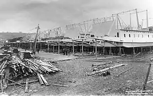The Moran sternwheelers were built to take advantage of the huge demand for inland shipping that was caused by the Klondike Gold Rush. All the vessels were launched the same day, April 23, 1898, every one with steam up in the boiler. The vessels were all complete by about May 25, 1898.[2]