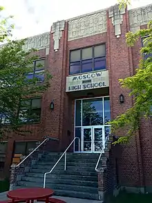 Moscow High School (MHS) is a four-year public high school in Moscow, Idaho, United States.[7] The flagship school of the Moscow School District serves grades 9–12. Since 2013, Erik Perryman has served as principal.[8][5] MHS colors are red, black, and white, and the mascot is a bear.[7]