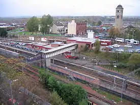 ![]() Motherwell railway station at Platforms 1 and 2. Trains running on the West Coast Main Line stop here. | |