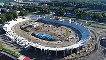 In 2013, the stadium was designed by the KŻ Orzeł racing club and was later approved for construction.[1] The construction took place between 2016 and 2018 adjacent to the old Orła speedway stadium. It opened on 29 July 2018 at the cost of Polish złoty 49.8 million.