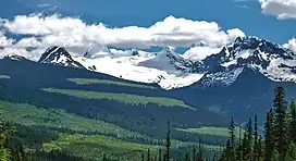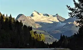 The first documented ascent of the summit was made July 18, 1924, by Allen Carpé and Professor Rollin Thomas Chamberlin (son of Thomas Chrowder Chamberlin) via the north glacier and east ridge.[8] A possibility exists that employees of the Canadian Northern Railway may have preceded in reaching the summit, but details have been lost to time.[9]