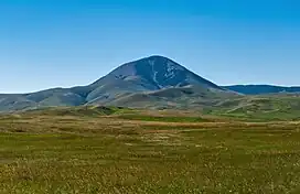 Mount Brown is the highest point in the county, highest point of the East Butte complex, and second-highest peak in the Sweet Grass Hills.[1][2] It is situated 26 miles (42 km) north of Chester, Montana, and eight miles (13 km) south of the Canada–United States border. Precipitation runoff from the mountain drains north to the Milk River.[1] Topographic relief is significant as the summit rises 3,000 feet (910 meters) above the surrounding plains in four miles (6.4 km) which makes it a prominent landmark visible for many miles. The slopes provide habitat for elk, mule deer, and white-tailed deer.[4]