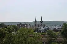 - 1855 – Evangelical Grace Church, the town's first church, opens at Third & Market Streets