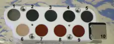 The calibration target for the NASA's Mars Curiosity rover ChemCam; developed by Mount Holyoke College professor of astronomy Melinda Darby Dyar, the instrument is made of heterogenous ceramics similar to those expected on Mars,[45] Dyar and her team have received multiple grants for analyzing Martian geology with this instrumentation[46]