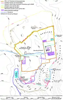 "Only in spring of 1848 did the British consul general in Constantinople and his colleague in Jerusalem,[ James Finn,] receive a firman to purchase a cemetery plot for the Protestant community."[5] Prepared by Nicolayson, later buried there, and with the support of Hugh Rose, British consul-general for Syria, and the Mutasarrıf of Jerusalem, Zarif Pasha, Bishop Gobat acquired the tract of land on Mount Zion in the same year, paying £ 350 (= 4,200 French francs) for the land, its enclosure and levelling.[6] Gobat financed the expenses with private funds earlier donated by Britons, Germans and Swiss, of which by December the British Government recovered £100 and later private British donators another £46.2.0, while Prussians did not specifically contribute to the project at that time. Mount Zion Cemetery replaced the old cemetery West of Jaffa Gate. So Gobat transferred the graves from there to the new cemetery on Mount Zion.[7] By the end of November 1848 it was completely enclosed by a wall.[6]